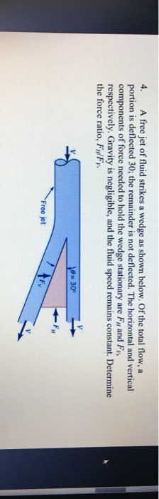 Of the total flow a portion is deflected the remainder is not deflected. The horizontal and vertical components of force needed to hold the wedge stationary are and respectively. Gravity is negligible and the fluid speed remains constant.